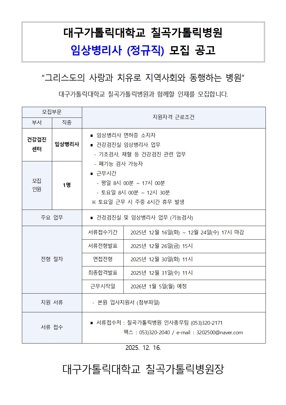 칠곡가톨릭병원 입사지원서를다운받을 수 있습니다.