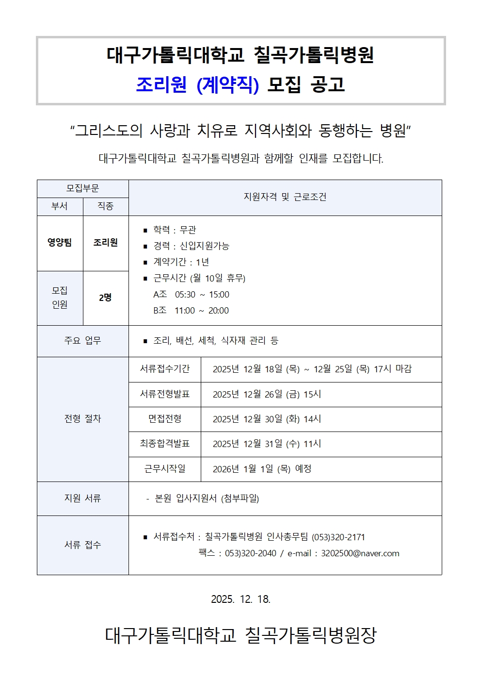 칠곡가톨릭병원 입사지원서를다운받을 수 있습니다.