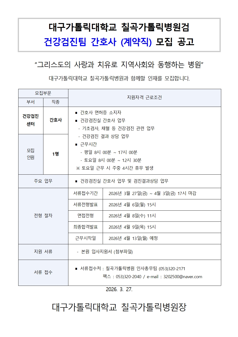 칠곡가톨릭병원 입사지원서를다운받을 수 있습니다.
