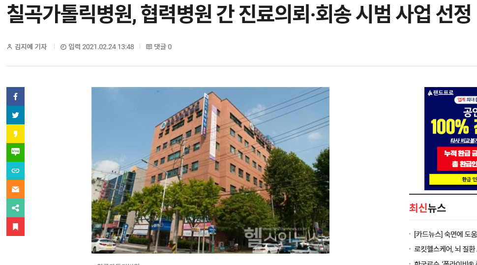 | [언론보도] 칠곡가톨릭병원 진료의뢰 회송시범사업 선정 | ||