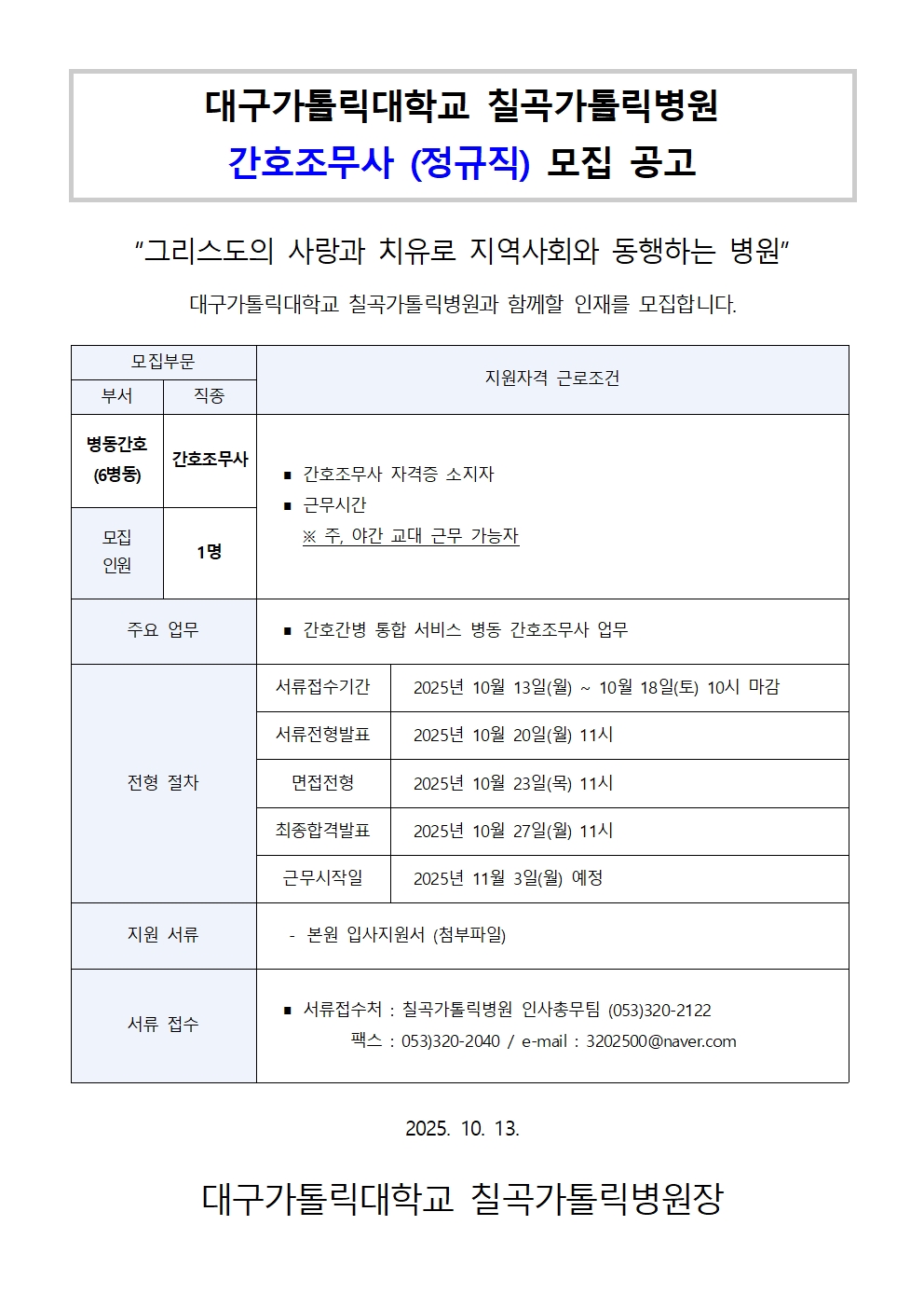 칠곡가톨릭병원 입사지원서를다운받을 수 있습니다.