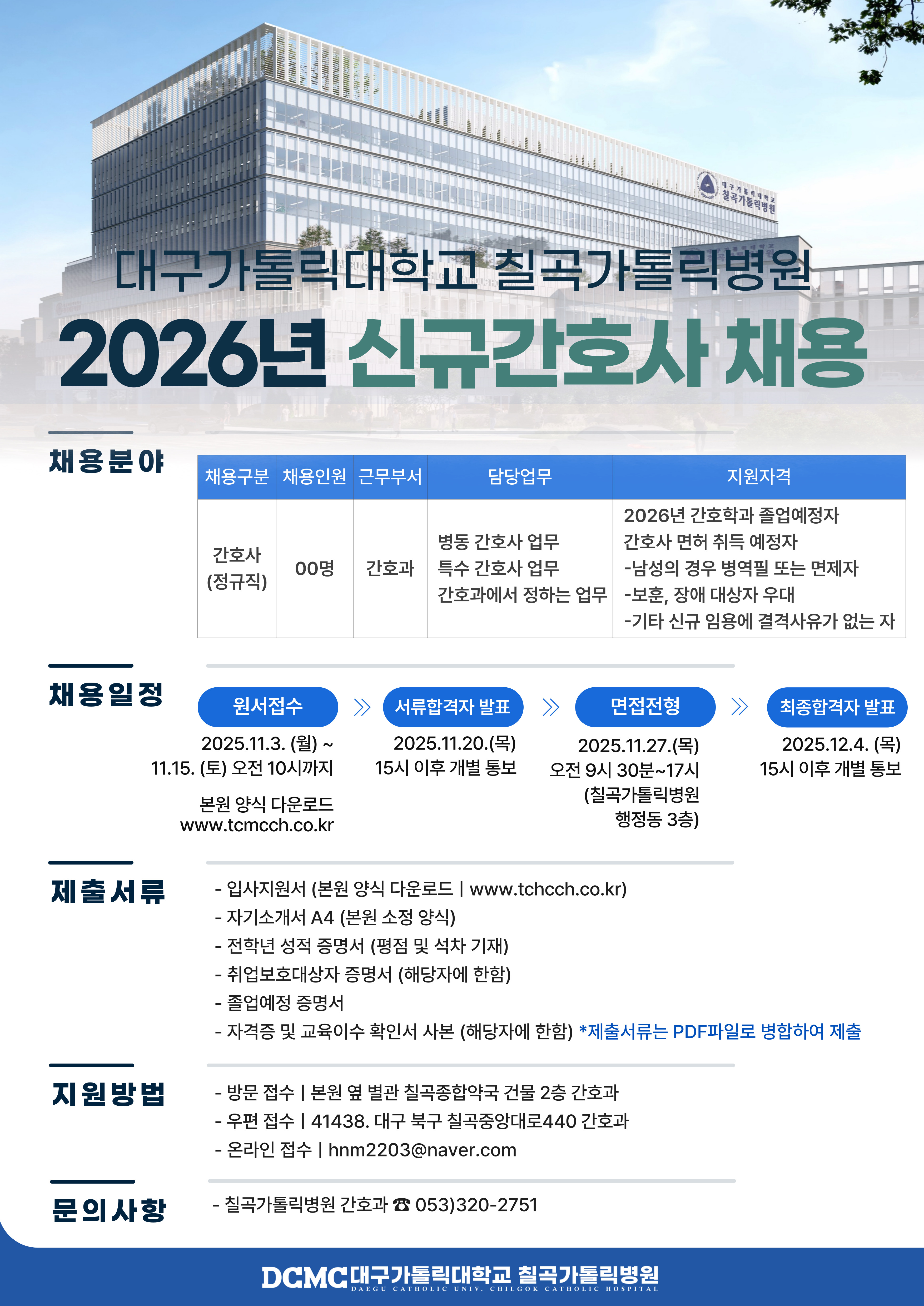 칠곡가톨릭병원 입사지원서를다운받을 수 있습니다.