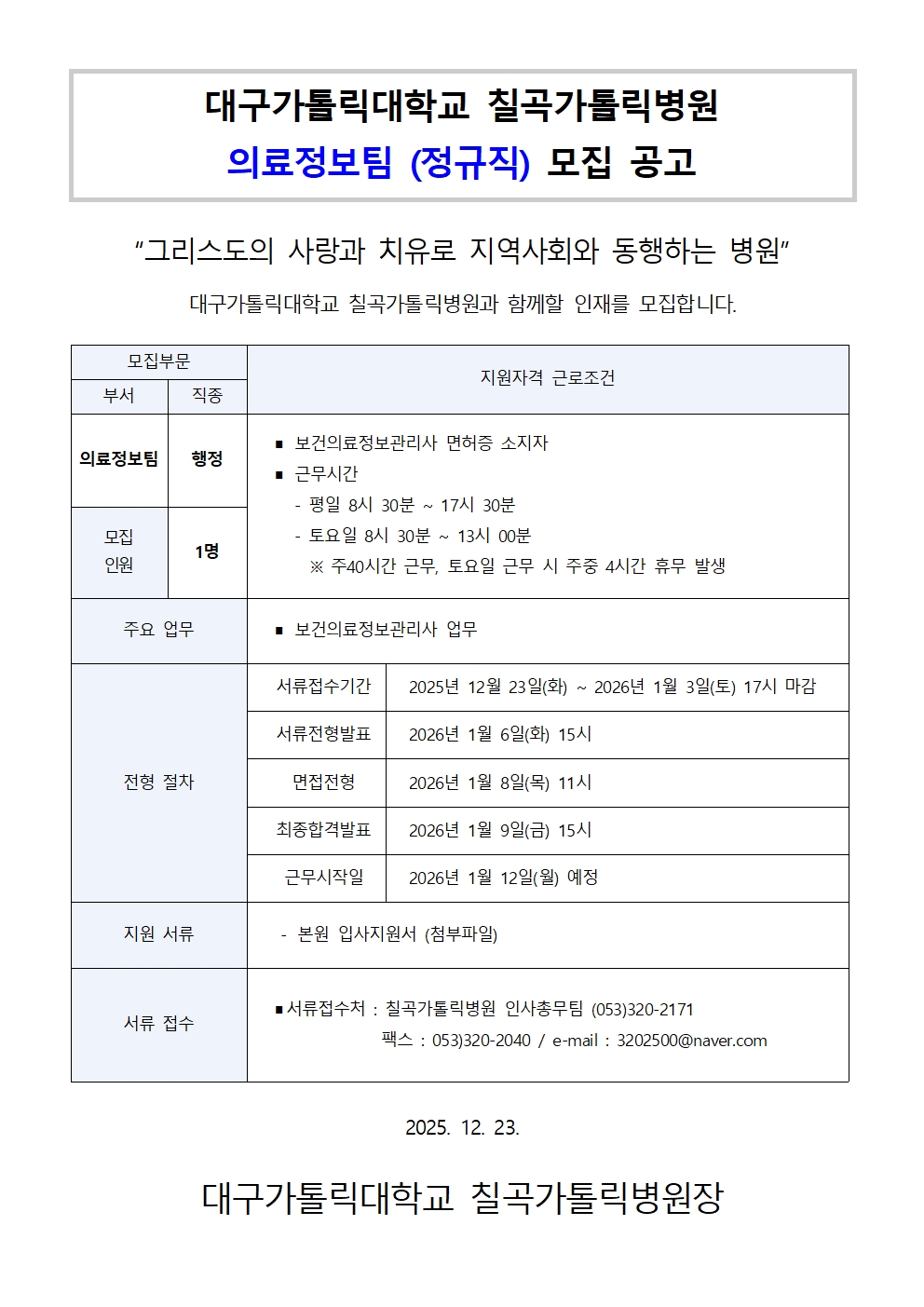 칠곡가톨릭병원 입사지원서를다운받을 수 있습니다.
